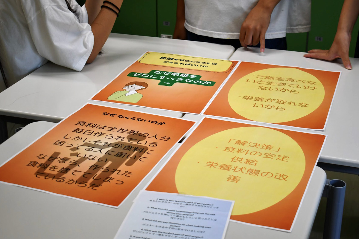 サマーキャンプの初日は、「社会起業家精神」をテーマに事前に作成したポスターを使ってプレゼンテーションを体験